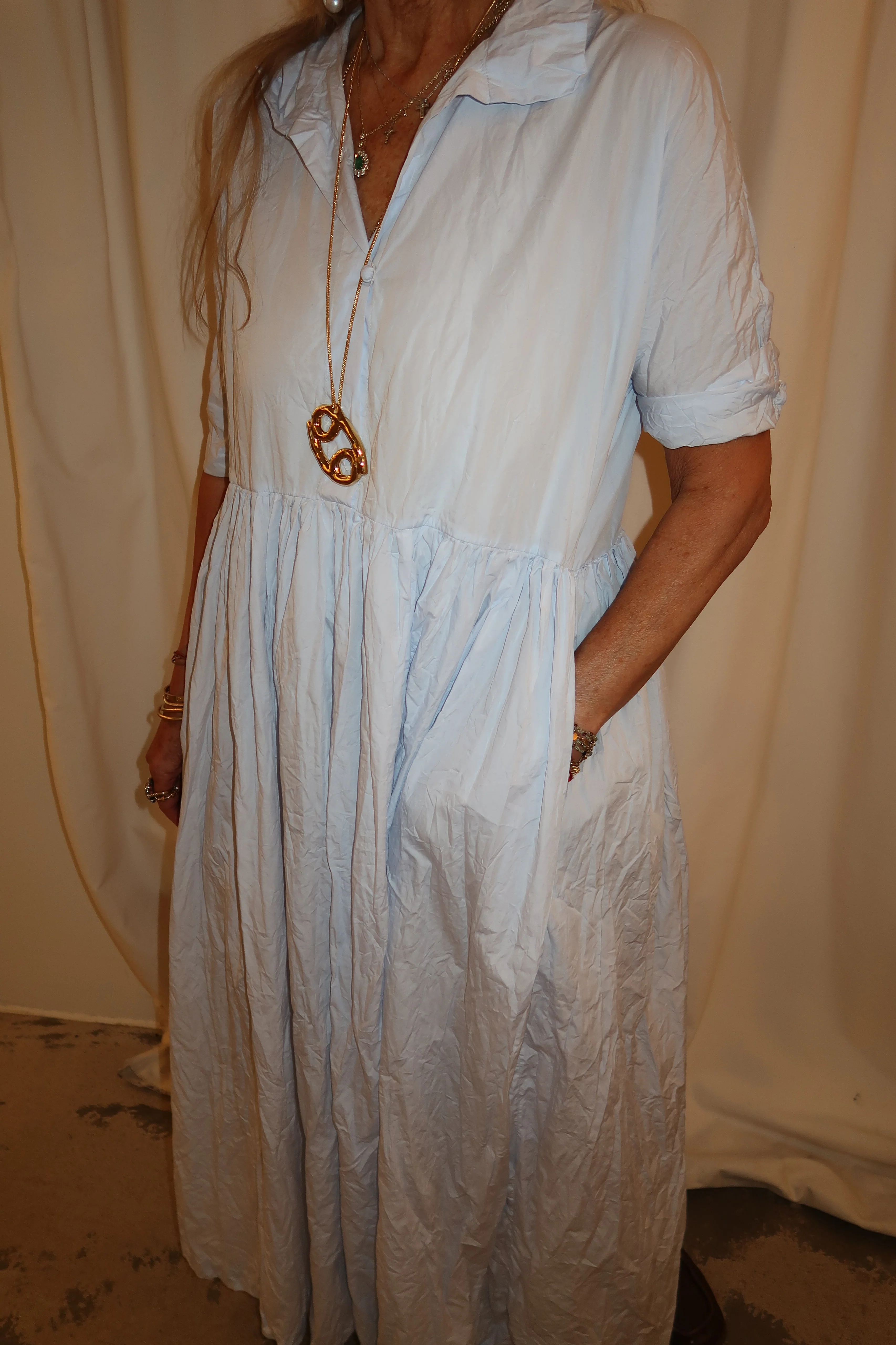 Daniela Gregis Madeleine dress in crispy cotton LightBlue