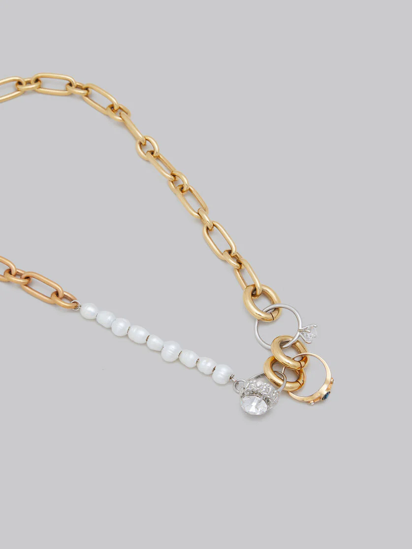 Marni Mixed link chain necklace with pearls and rings