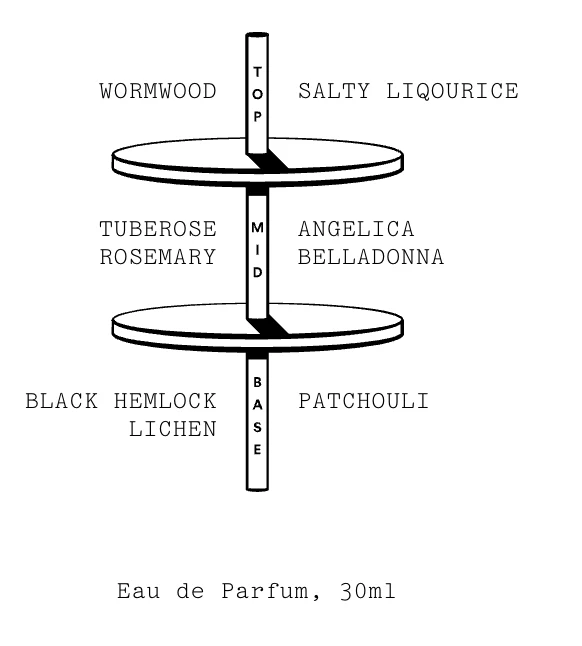 Base notes - BLACK HEMLOCK, LICHEN, PATCHOULI