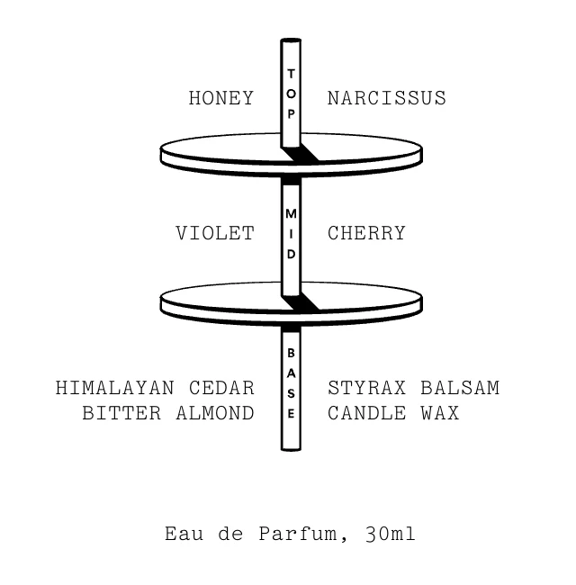 Base notes - HIMALAYAN CEDAR, BITTER ALMOND, STYRAX BALSAM, CANDLE WAX